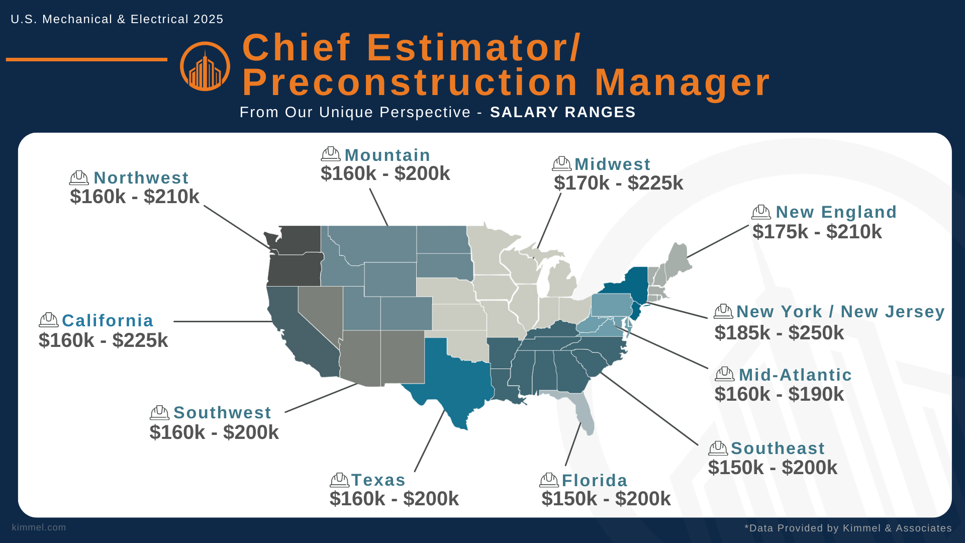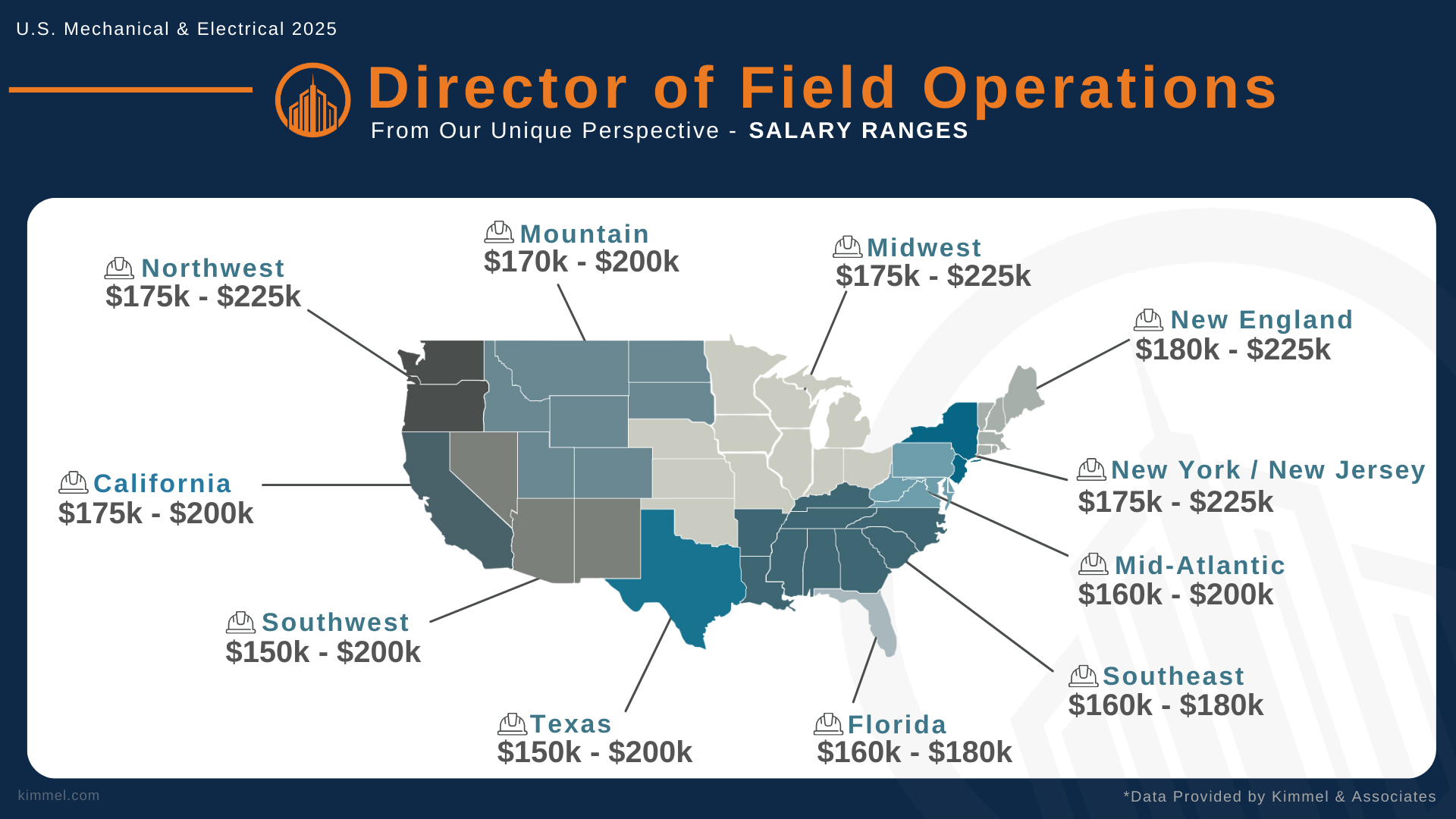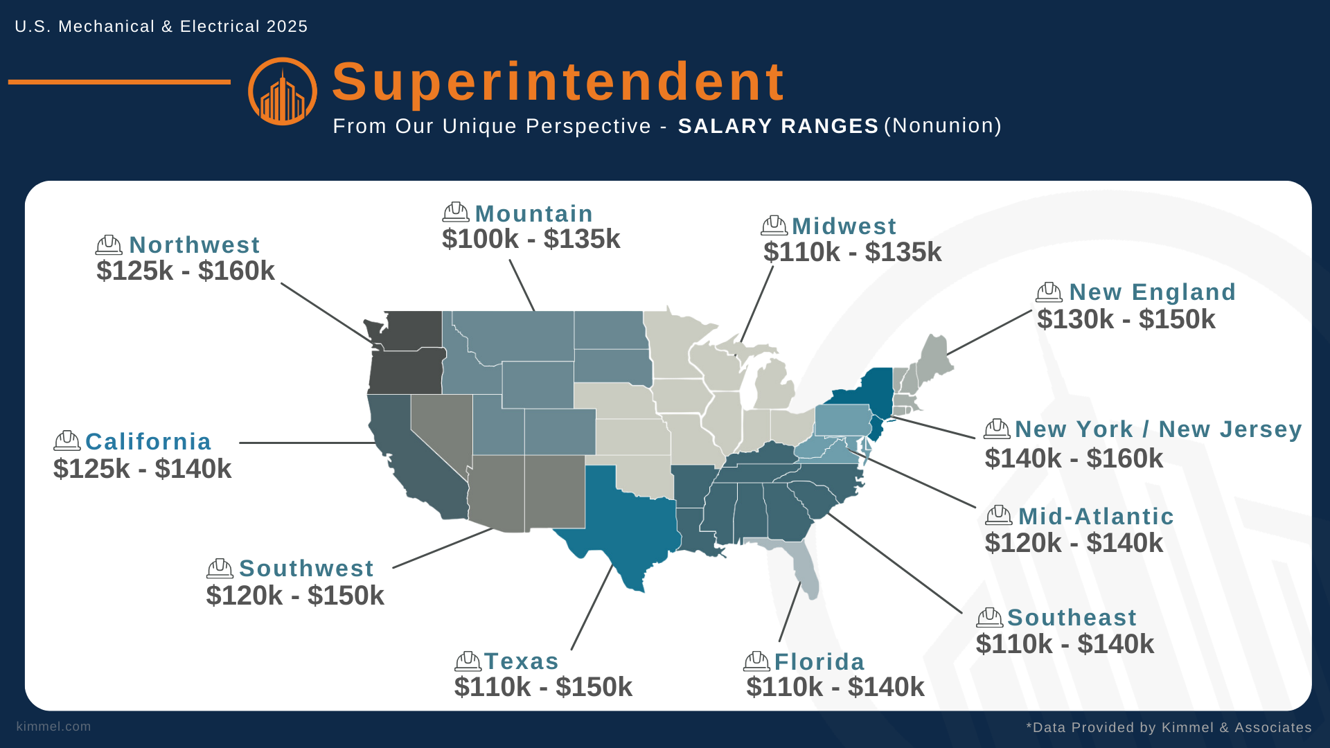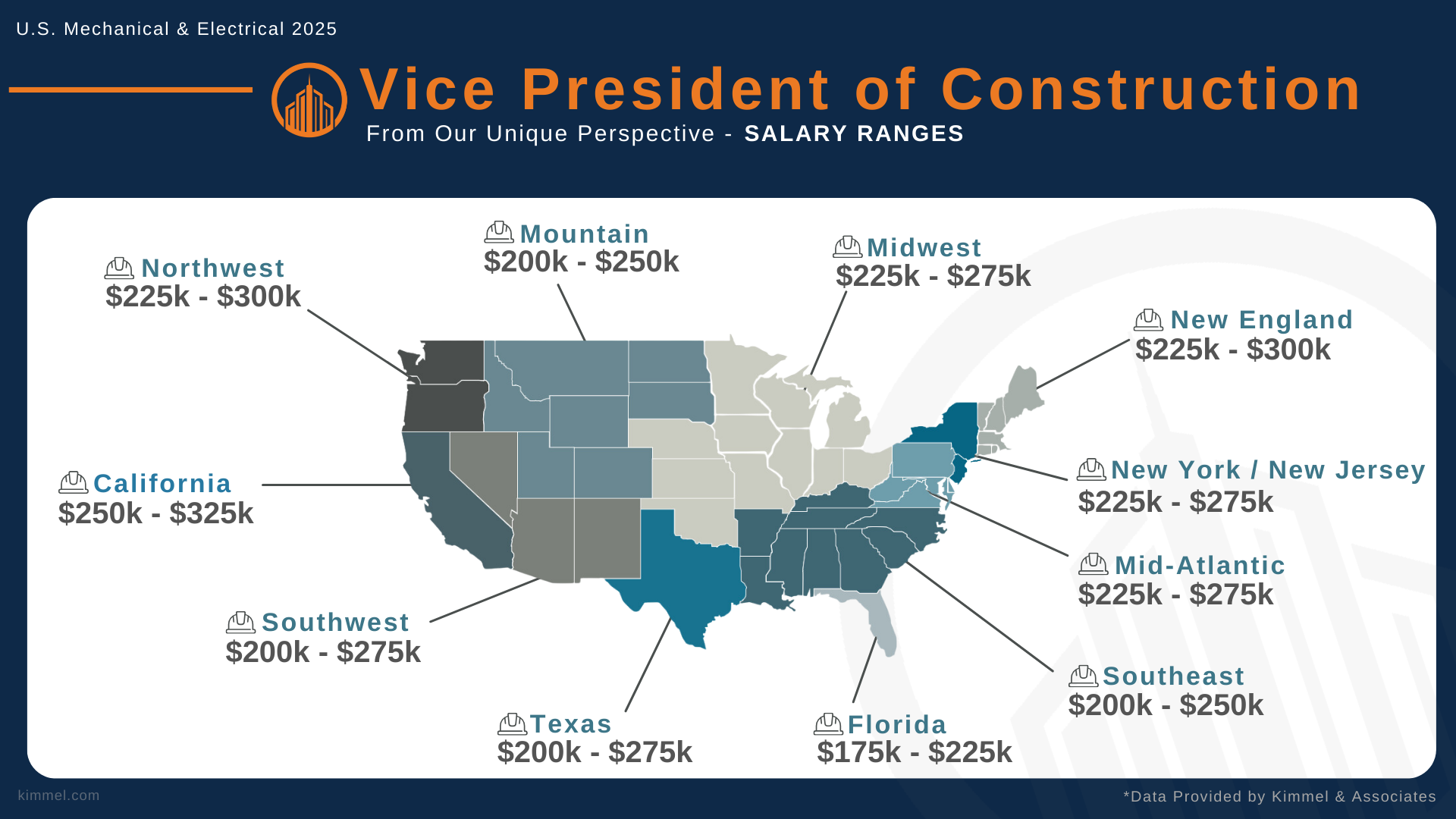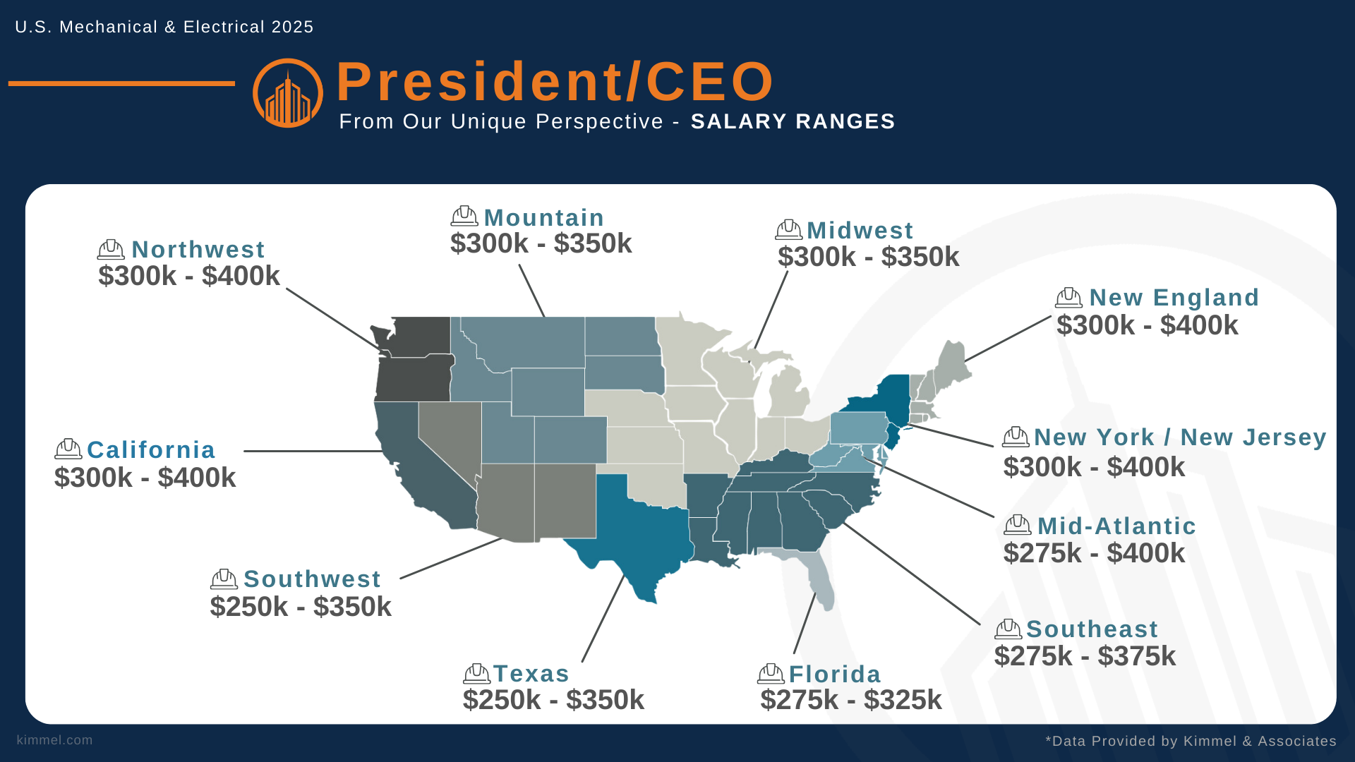 At Kimmel & Associates, our consultants speak with thousands of construction professionals every year, giving us a unique perspective and real-time insights into how compensation, hiring trends, and leadership needs are evolving within the mechanical and electrical contracting industries. We use this knowledge to better serve both companies and professionals nationwide.
